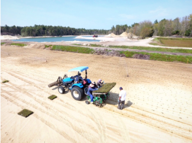 If you purchase plugs that were grown in a greenhouse you’re going to need a tractor with a driver and three backward facing workers. These workers have trays of the plugs and they simply fill the tractor with the plugs and it takes the plugs and rotates them down to the ground and plants them. Here’s a picture for reference…